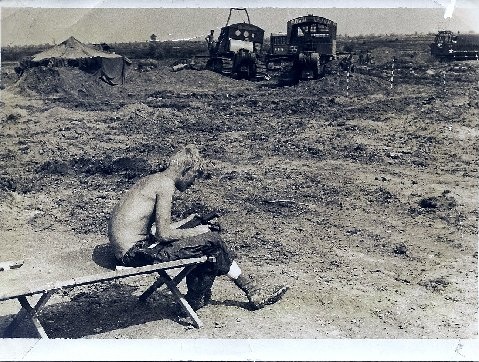 Bill Vahoviak sent along this photo of himself in Vietnam and says it was “the one photo of my residence while in the jungle. I am cleaning my M-79 grenade launcher and my M-16. I had just returned after I got medivac-ed for an injury to the leg.”