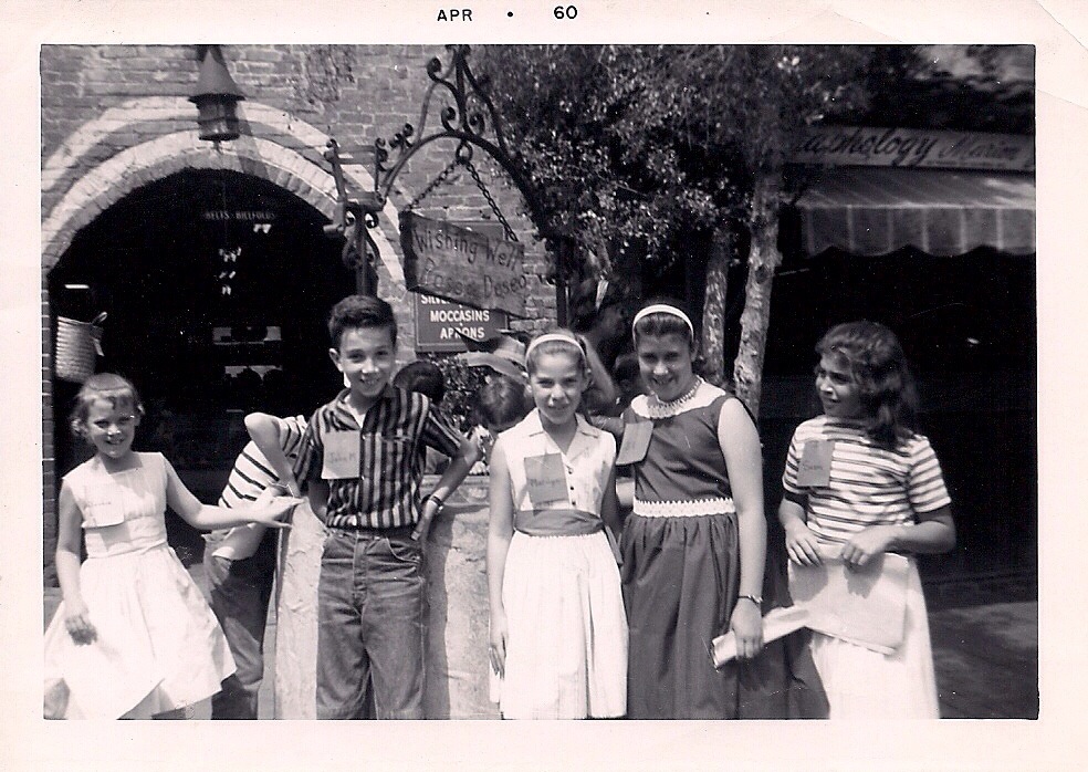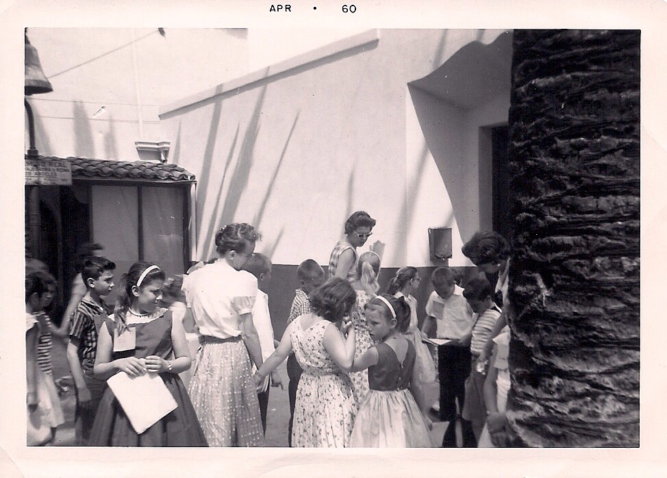 Jill Gipson continues to share some priceless old photos, this time two pictures taken in April 1960. Mrs. Gedda’s third-fourth grade class from Emerson School took a field trip to Olivera Street, probably as a unit on early California history.