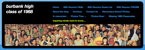 Whatever the origin, we have started a new page on the Burbank High Class of 1968 blog called, you got it, “Inquiring minds want to know.” The source for information from this page comes from a Reunion Questionnaire which amazingly Donna Canzoneri Wray and Fred Lee Stenson miraculously found and filled out. Hey, with all the people who have signed up to come to the 50th Class Reunion, there will never be enough time to talk to everyone! This questionnaire is one way to help everyone “catch up” with what’s been going on in your life. This is your chance to brag, people!